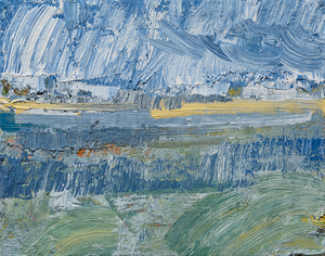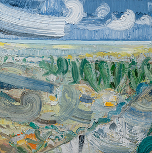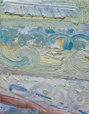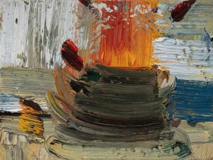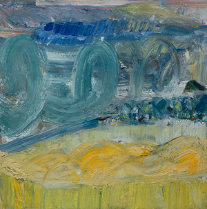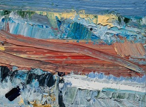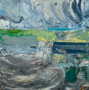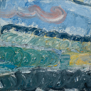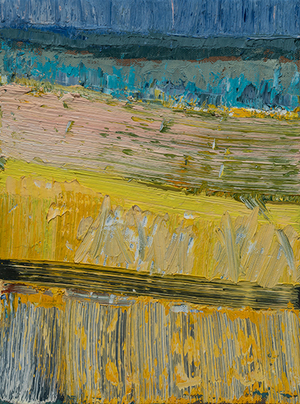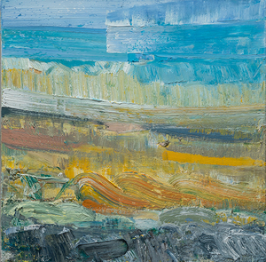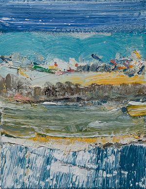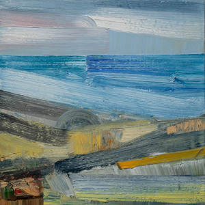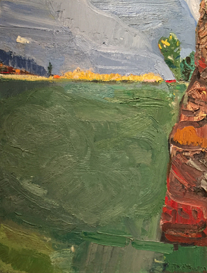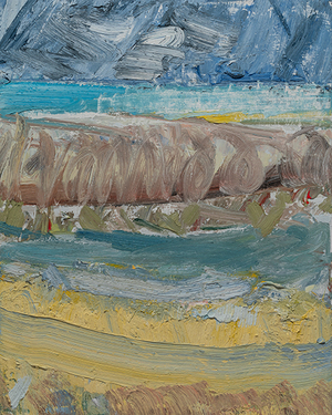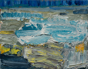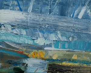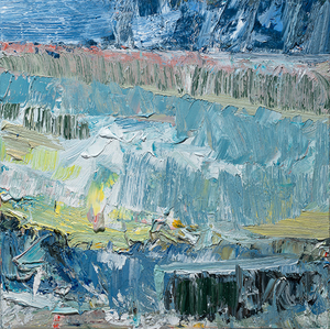 John Santoro lives and works in Chicago where he obtained his degree at the University of Chicago. John's aesthetic lies squarely within the history of abstract expressionism and his work exhibits thick, rich surfaces built up with oil paint. John also has an interesting, slightly wry sense of humor that comes through in both his subject and title choices. Santoro interprets landscapes, forms and structures in a simplistic yet focused way that invites the viewer into the work.
