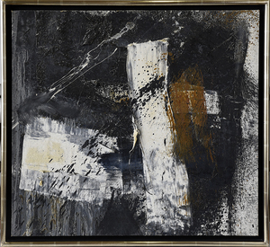 Michael Goldberg (1924-2007), a central figure in the Abstract Expressionist movement as it developed in New York in the late 1940s, is known for his action-packed, gestural canvases. Over the course of his long career he went through many stylistic phases that included colorful gesture filled oil and collage works, monochromatic works of red and then black, bands of white on black, caligraphic images and bright bands of color hinting of architectural forms. He was also an art educator who taught at the University of California, Berkeley from 1961 to 1962; Yale University in 1967; and the University of Minnesota in 1968. He and his artist wife, Lynn Umlauf, both taught at the School of Visual Arts in New York city. Goldberg was born in 1924 in the Bronx of New York City. His studies at the Art Students League, 1938-1942, were interrupted by World War II where he served as a paratrooper in North Africa and Burma, making eighty jumps behind Japanese lines. Returning to New York, he studied with Jose de Creeft and Hans Hofmann, and Hoffman remained a strong influence. He was also influenced by Roberto Matta and Arshile Gorky, but it was Willem de Kooning, and his use of fiery brush-work and explosive color, who would prove to be Goldberg’s greatest influence. Goldberg participated in the seminal 9th St. Show of 1951 and received his first solo exhibition at Tibor de Nagy Gallery in 1953. Beginning 1980, he spent five months of each year in Tuscany, Italy on an estate near Siena. In his studio there, he created many of his signature paintings done with oil sticks pressed directly onto canvas. Goldberg died on December 30, 2007 while working in his studio at 222 Bowery in New York City (Mark Rothko’s old studio).