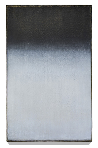 Janis' oil paintings are either single panel or several panels—ranging in size from 12 inches to 9 feet in width! The works are a skillful balance of color and brushwork, each piece composed of many layers of paint and several thousands of carefully placed brushstrokes. Meticulously painted, their surfaces almost resemble encaustic yet they are only oil. Often working in quiet tones of blue, gray and gold, Pozzi-Johnson creates an artistic space that is steady, calm and complex... all at once.