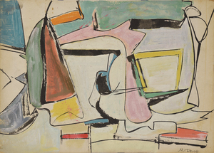 <em>Untitled (New Hope)</em>, c. 1956<div class='medium'>pastel and charcoal on paper</div><div class='dimensions'>7 1/4 x 11 1/2 inches</div><div class='signature'>signed at lower right; estate stamped verso</div><div class='extra_info'></div><div class='number'>#11964</div><div...